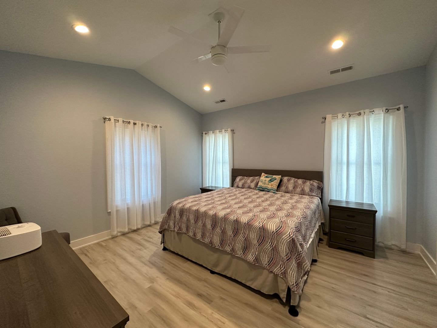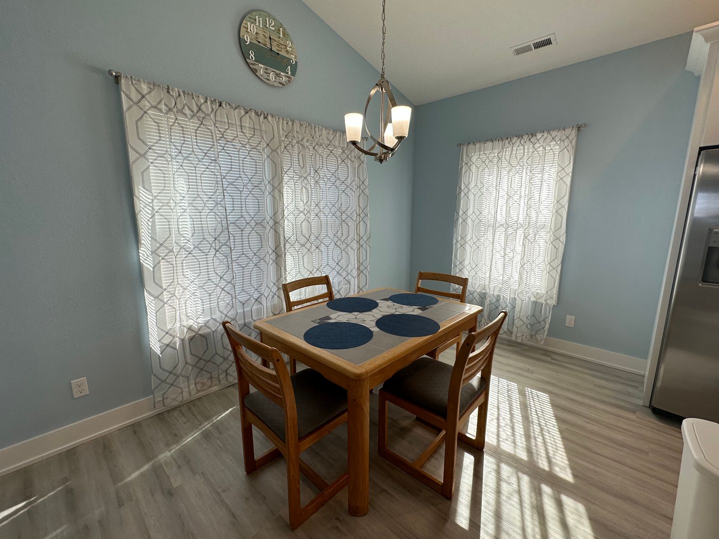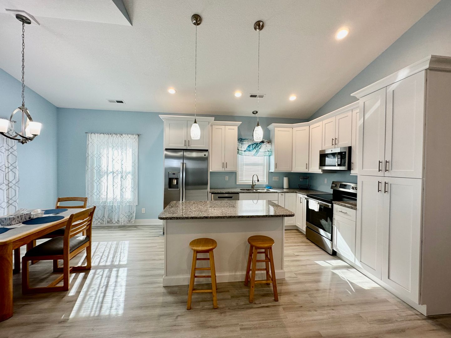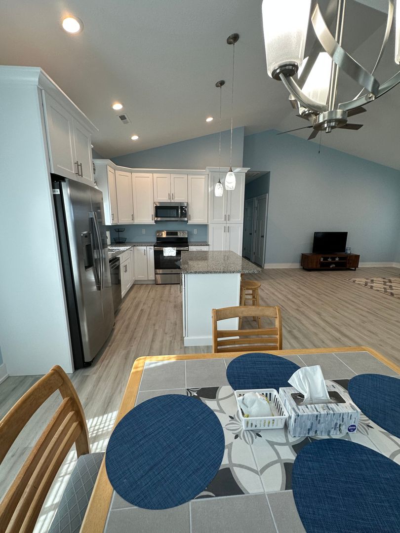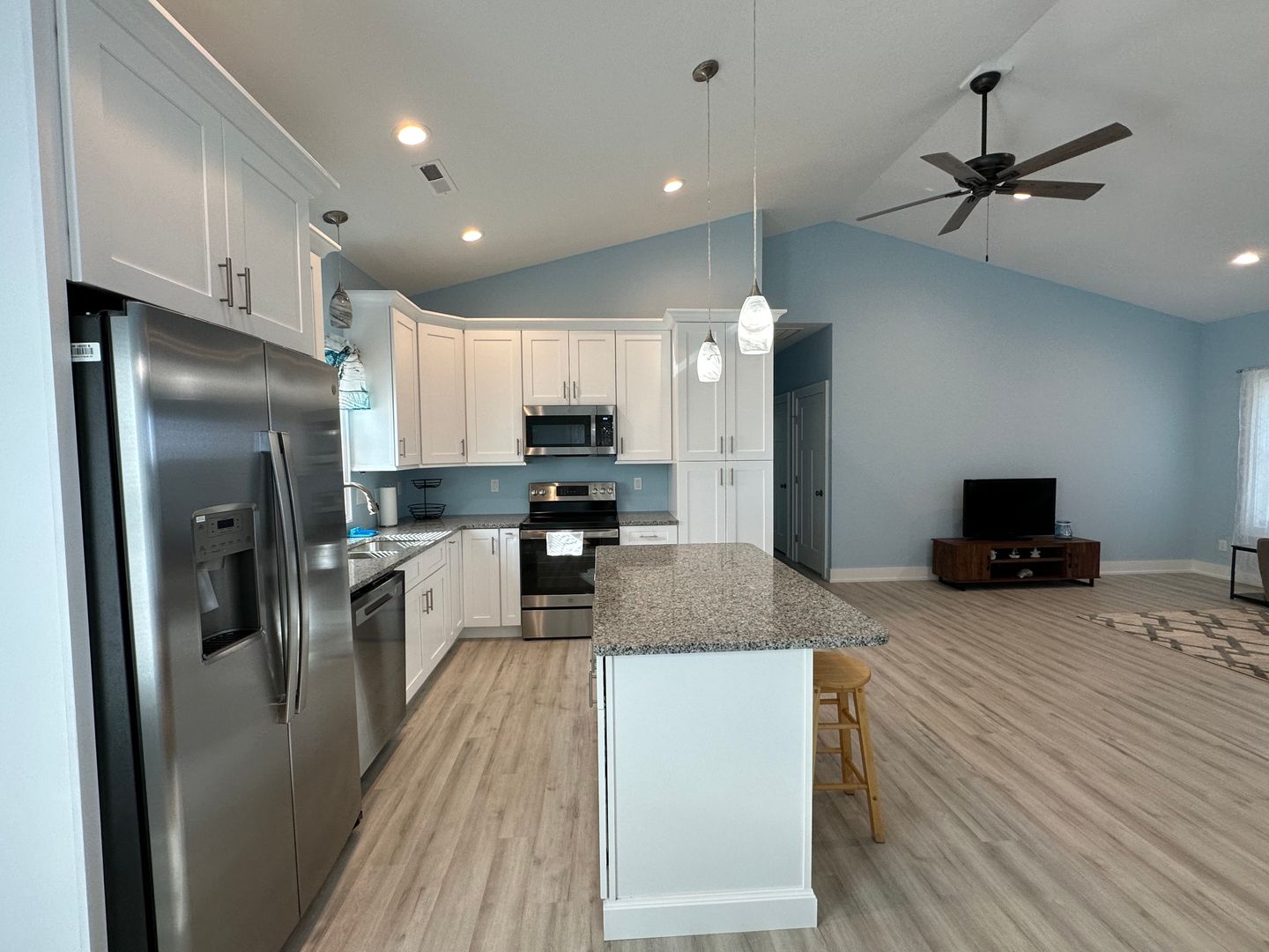 This lovely PRACTICALLY new 3 bedroom 2 bath home is furnished and ready to move in. Kitchen has stainless appliances including a refrigerator, stove, dishwasher, microwave and there is also a stack washer and dryer in the hallway. Beautiful vinyl plan flooring throughout the home. The downstairs of the home is locked off for and shared with the owner for occasional use.